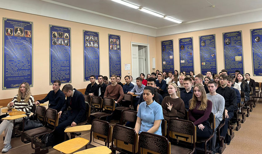 17 мая 2025 г. в Санкт-Петербургском филиале Университета прокуратуры Российской Федерации состоялся внутривузовский Круглый стол «Моя семья в годы Великой Отечественной войны (1941-1945 гг.)», организованный студенческим научным кружком «Правовед» и Патриотическим клубом Института. В рамках Круглого стола студенты 1, 2 и 3 курсов юридического факультета поделились сведениями о членах их семей – участниках Великой Отечественной войны. Доклады сопровождались презентациями редких фотографий и наград героев войны, а также материалами о работниках тыла. Рассказы вызвали большой интерес и эмоциональный отклик слушателей. |