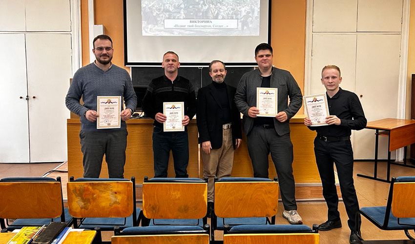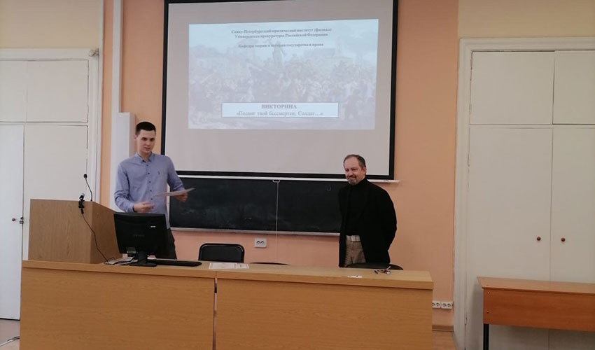 27 мая 2025 г. в Санкт-Петербургском филиале Университета прокуратуры Российской Федерации на факультете профессиональной переподготовки и повышения квалификации в рамках государственно-патриотического воспитания слушателей состоялась викторина «Подвиг твой бессмертен, советский Солдат…», посвященная 80-летию Победы советского народа в Великой Отечественной войне (1941-1945 гг.). Открыла мероприятие декан факультета профессиональной переподготовки и повышения квалификации Головко И.И. Викторина организована и проведена заведующим кафедрой теории и истории государства и права Амплеевой Е.Е. и доцентом кафедры Ерёминым А.В. при активном участии студентов четвертого курса юридического факультета Аверьяновой В.С., Гуревича Д.А. Участники вспомнили события Великой Отечественной войны; прокуроров этого периода; мемориалы Санкт-Петербурга и Ленинградской области; модели военной техники и произведения искусства. В викторине приняли участие команды: После проведения трех туров Викторины места распределились следующим образом: Выражаем благодарность всем участникам Викторины за проявленный интерес и поздравляем победителей и призеров! |