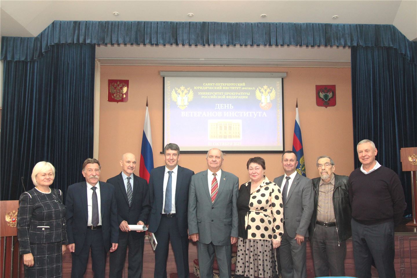 01 октября 2025 г. в Санкт-Петербургском филиале Университета прокуратуры Российской Федерации состоялось торжественное мероприятие, посвящённое Дню ветеранов Института, приуроченное к Международному дню пожилого человека и важному событию в истории Института – 1 октября 1966 года начались занятия в Институте усовершенствования следственных работников органов прокуратуры и охраны общественного порядка при Прокуратуре СССР, образованном в соответствии с постановлением ЦК КПСС и Совет Министров СССР от 10 декабря 1965 года «О мерах по улучшению работы следственного аппарата органов прокуратуры и охраны общественного порядка».