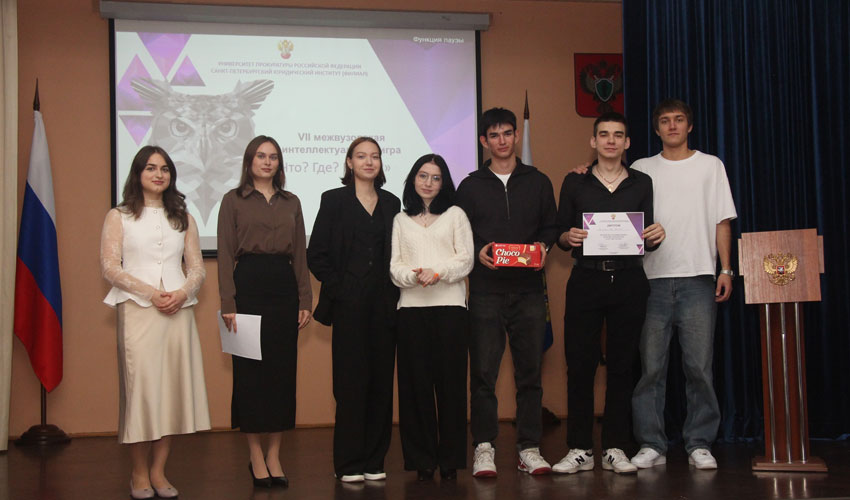 11 октября 2025 г. в Санкт-Петербургском филиале Университета прокуратуры Российской Федерации состоялась Седьмая межвузовская интеллектуальная игра «Что? Где? Когда?», организованная Сектором по внешним связям Студенческого совета Института. Участие в игре приняли обучающиеся 8-ми вузов: Санкт-Петербургского государственного университета, Ленинградского областного филиала Санкт-Петербургского университета МВД России, Санкт-Петербургского филиала Финансового Университета при Правительстве РФ, Санкт-Петербургского университета МВД РФ, Санкт-Петербургского государственного морского технического университета, Санкт-Петербургского филиала Российской таможенной академии им. В.Б. Бобкова, Санкт-Петербургского государственного педиатрического медицинского университета, Института. Интеллектуальное состязание состояло из двух туров: командам были предложены игровые задания, включающие в себя вопросы на эрудицию, начитанность, смекалку и сообразительность. По итогам напряженной игры места на пьедестале распределились следующим образом: I место — команда Санкт-Петербургского филиала Финансового университета «Пингвикторина»; II место — команда Санкт-Петербургского филиала Университета прокуратуры Российской Федерации «Острые пузырьки»; III место — команда Санкт-Петербургского университета МВД РФ «286 team». Поздравляем победителей и призеров, благодарим всех участников и желаем дальнейших побед!