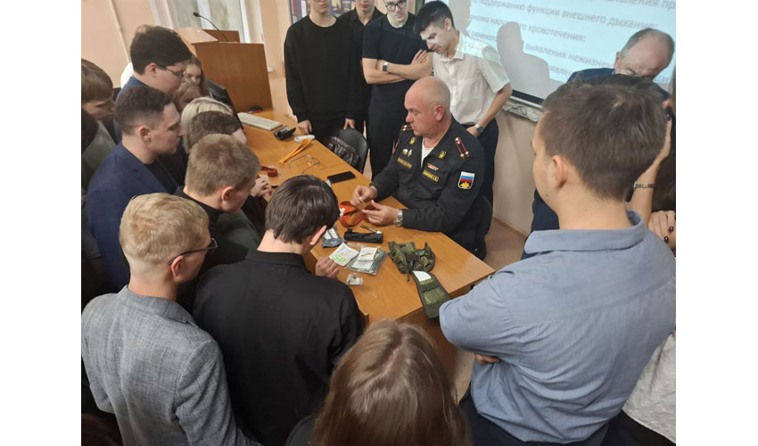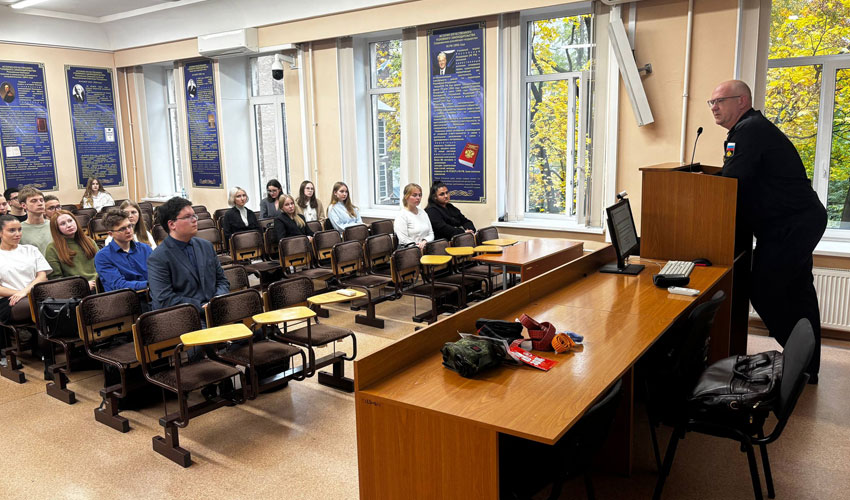 14 октября 2025 г. в Санкт-Петербургском филиале Университета прокуратуры Российской Федерации состоялась встреча студентов юридического факультета Института с начальником Центра тактической медицины Минобороны России Завирским А.В., организованная студенческим научным кружком «Правоохранительные органы» и Патриотическим клубом. В ходе лекции Александр Владимирович рассказал об основах оказания первой помощи и медицинской помощи в условиях боевых действий, подробно остановился на категориях раненых и порядке их сортировки, а также на составе и назначении индивидуального медицинского набора, обязательного для каждого военнослужащего. Особое внимание было уделено практической части занятия: Завирский А.В. продемонстрировал порядок наложения жгута на конечности и другие мероприятия, направленные на предотвращение тяжёлых последствий ранений, пояснил особенности применения различных медицинских принадлежностей в полевых условиях. В рамках лекции была затронута и военная медицинская практика – как в ретроспективном, так и в современном аспекте. Александр Владимирович поделился примерами из истории отечественной военной медицины, а также рассказал о современных подходах, применяемых сегодня при оказании медицинской помощи, в том числе, в ходе проведения специальной военной операции. Кроме того, лектор осветил вопросы законодательной и правовой основы медицинской подготовки и деятельности медицинской службы Вооружённых Сил Российской Федерации, подчеркнув значимость строгого соблюдения установленных норм и стандартов при организации медицинского обеспечения. Отдельное внимание было уделено инновациям в сфере военной медицины: современным методикам лечения, новым медицинским технологиям и техническим средствам, внедряемым в практику военных врачей. Встреча прошла в познавательной, содержательной и интересной для студентов форме, способствовала формированию у слушателей практических представлений о системе военной медицины и повышению их интереса к данному вопросу.