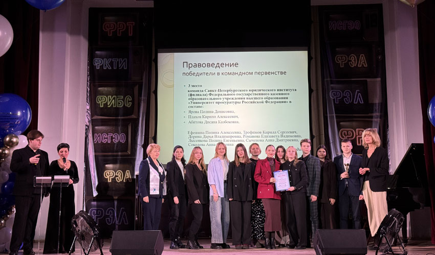 01 декабря 2025 г. состоялась торжественная церемония награждения победителей региональных предметных студенческих олимпиад на площадке Санкт-Петербургского государственного электротехнического университета «ЛЭТИ» им. В.И. Ульянова (Ленина) с участием представителей Комитета по науке и высшей школе. По результатам проведения региональной предметной студенческой олимпиады по «Правоведению» высших учебных заведений, расположенных на территории Санкт-Петербурга, студенты 2 курса юридического факультета Санкт-Петербургского филиала Университета прокуратуры Российской Федерации (Ярова Полина, Плахов Кирилл, Абитова Дисана, Ефешина Полина, Трофимов Кирилл, Дорина Дарья, Романова Елизавета, Лысенкова Полина, Сыченова Анна, Соколова Анна) под руководством доцента кафедры государственно-правовых дисциплин Чепенко Я.К. заняли 3 место в командном первенстве. В личном первенстве 3 место заняла Ярова Полина. Поздравляем призеров региональной олимпиады и желаем всем участникам дальнейших успехов! |