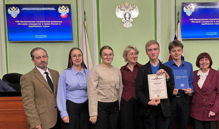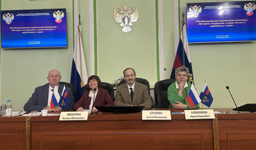 03 декабря 2025 г. в Санкт-Петербургском филиале Университета прокуратуры Российской Федерации состоялась VIII Межвузовская студенческая Олимпиада «История государства и права России и зарубежных стран». В Олимпиаде приняли участие команды из Санкт-Петербургского университета МВД России, Российского государственного университета правосудия имени В.М. Лебедева (Северо-Западный филиал), Санкт-Петербургского государственного университета аэрокосмического приборостроения, Института. В состав жюри вошли профессор кафедры теории и истории государства и права Института Ломакина И.Б., доценты кафедры Еремин А.В., Иванова Н.М., доцент Российского государственного университета правосудия Потапов Ю.А. В проверке результатов принимали участие студенты 1 курса юридического факультета Института Кучерявенко С.А. и Титова В.А. Олимпиада состояла из двух туров: тест (индивидуальный тур), задания на соотношение (командный тур). По результатам 1 и 2 туров: Поздравляем победителей и призеров желаем всем дальнейших успехов! |