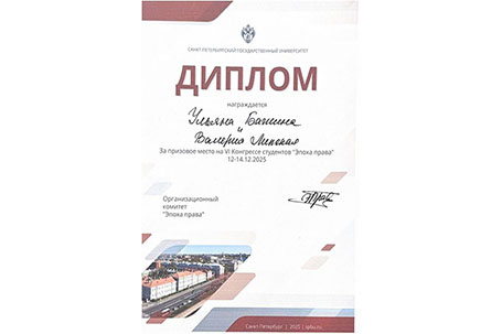 13-14 декабря 2025 г. прошел VI Международный юридический студенческий конгресс «Эпоха права: время объединяться» на базе Санкт-Петербургского государственного университета. 13 декабря 2025 г. в рамках Конгресса состоялся финал Всероссийского судебного конкурса (кейс-чемпионата). Студенты 3 и 4 курсов юридического факультета Санкт-Петербургского филиала Университета прокуратуры Российской Федерации продемонстрировали блестящую подготовку и высокий профессионализм в области административного права, завоевав главные награды престижного соревнования. Конкурс, направленный на выработку практических навыков судебной защиты, проходил в два этапа. На первом, заочном этапе, участники решали сложный юридический кейс. Во втором, очном туре, команды представляли и отстаивали правовую позицию по реальному судебному делу. По итогам напряженной борьбы команды студентов Института показали выдающийся результат в области административного права. Команда «Бригада» в составе Ивана Вдовиченко и Лилии Кондратьевой (4 курс) была удостоена звания ПОБЕДИТЕЛЯ конкурса! Их глубокая аналитика, убедительная аргументация и мастерство судебных ораторов покорили жюри. Команда «Литейный 44» в составе Виктории Карташевой и Виктории Тен (3 курс) с достоинством вошла в число ПРИЗЕРОВ соревнования, подтвердив утверждение, что в Институте готовят сильнейших практико-ориентированных специалистов. 14 декабря 2025 г. студенты 5 курса юридического факультета Санкт-Петербургского филиала Университета прокуратуры Российской Федерации приняли участие в Конференции в рамках VI Международном юридическом конгрессе студентов «Эпоха права: время объединяться». ПРИЗЕРАМИ в секции «Процессуальное право: гражданское, арбитражное, уголовное и административное судопроизводства» стали студенты 5 курса Института Бажина Ульяна и Липская Валерия, которые выступили с докладом «Защита прокурором публичных интересов в арбитражном процессе»! Поздравляем наших студентов и научных руководителей: заведующего кафедрой гражданско-правовых дисциплин Н.А. Васильчикову и старшего преподавателя кафедры государственно-правовых дисциплин Л.С. Булгакову с блестящей победой, желаем дальнейших успехов!