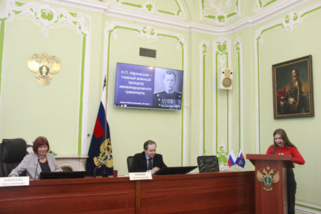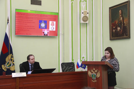 21 апреля 2021 г. в Актовом зале Санкт-Петербургского юридического института (филиала) Университета прокуратуры Российской Федерации состоялся ежегодный круглый стол, посвященный истории отечественной прокуратуры. В работе круглого стола приняли участие студенты 1 и 4 курсов. Ведущими круглого стола были зав. кафедрой теории и истории государства и права Е. Е. Амплеева, доценты Еремин А. В. и Иванова Н. М. В рамках круглого стола были рассмотрены вопросы деятельности прокуратур субъектов Российской Федерации – республик Удмуртия, Кабардино-Балкария, Ивановской, Калининградской и Белгородской областей, Приволжского федерального округа в связи с историей государства и изменениями в законодательстве СССР и Российской федерации. Внимание также было уделено проблемам осуществления прокурорского надзора в исторической ретроспективе.