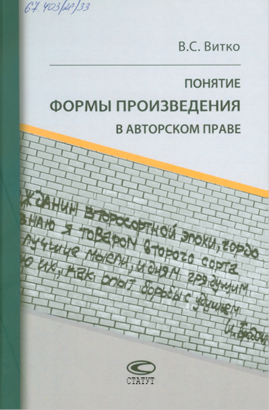 В. С. Понятие формы произведения в авторском праве / В. С. Витко. — Москва : Статут, 2020. —