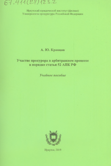 Участие прокурора в арбитражном процессе в порядке статьи 52 АПК РФ : учебное пособие / А. Ю. Кравцов ; Иркутский юридический