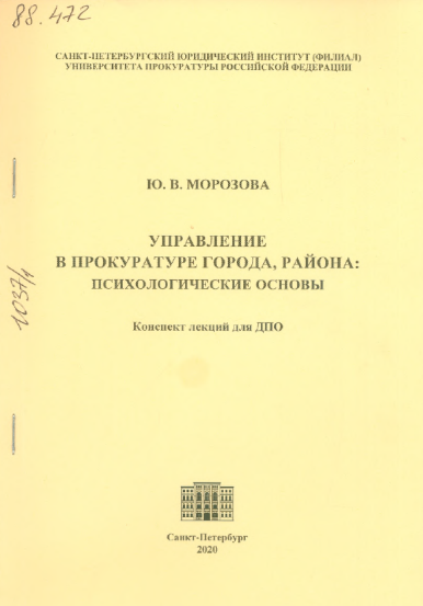 Управление в прокуратуре города, района: психологические основы : конспект лекций для ДПО / Ю. В. Морозова ;