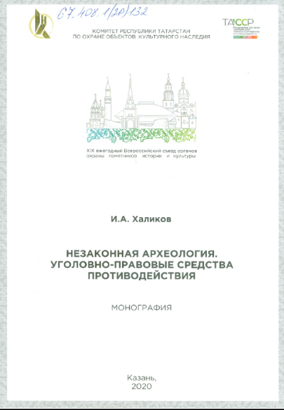 И. А. Незаконная археология. Уголовно-правовые средства противодействия : монография / И. А. Халиков ;